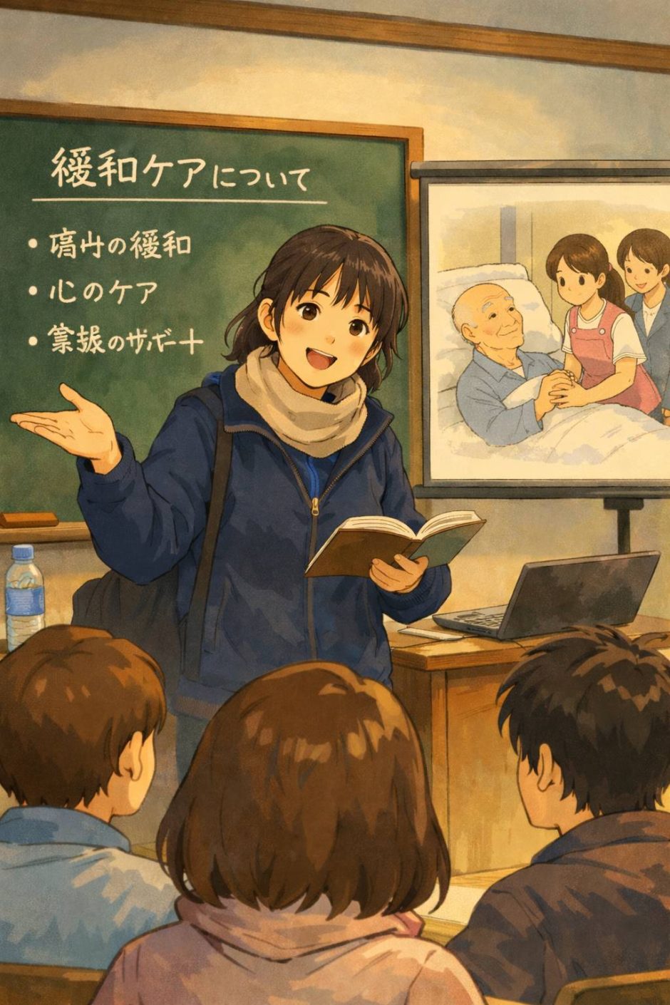 今回の講義で、緩和ケアが特別な医療ではなく、日常生活の中にある視点として伝わった証だと感じ、うれしく思いました。